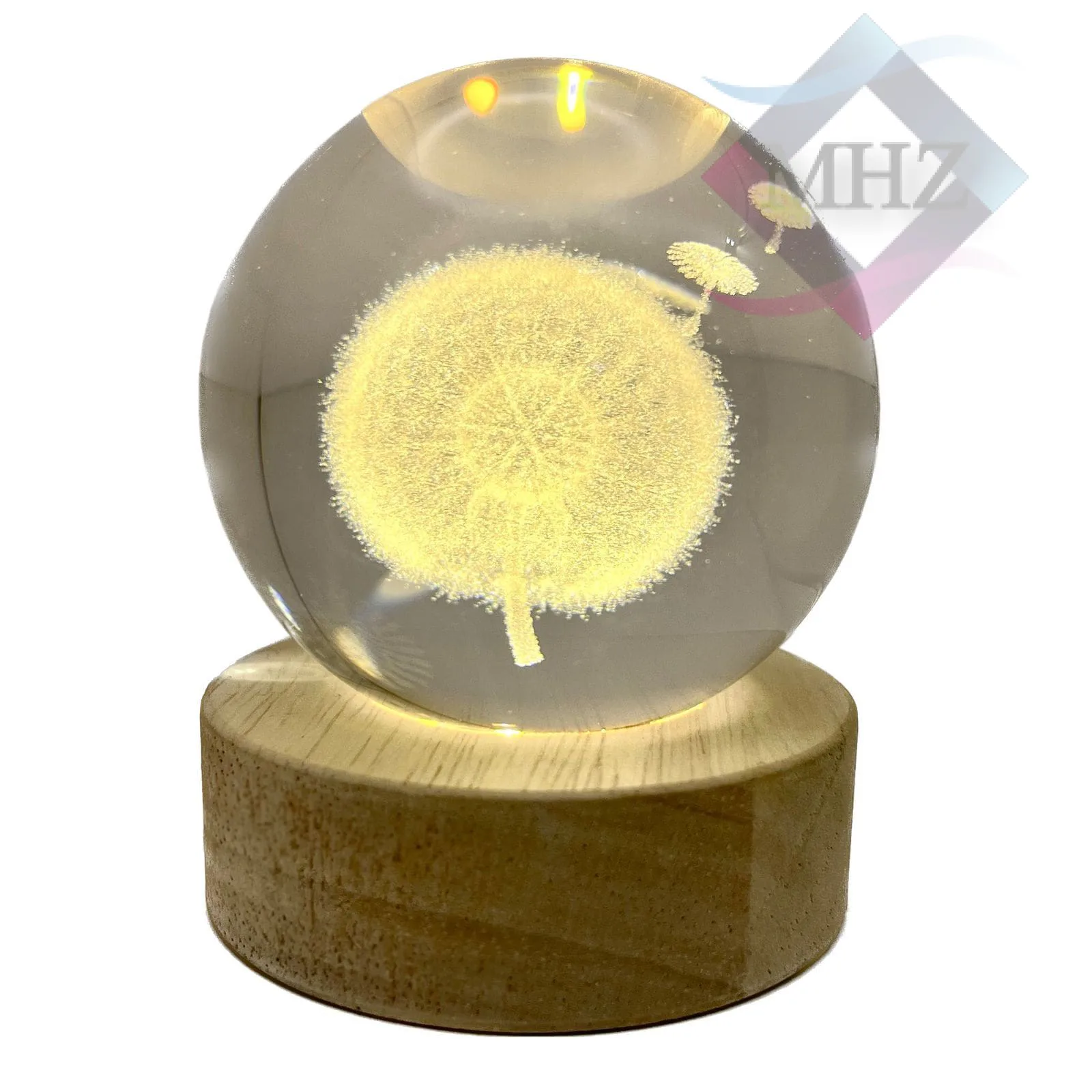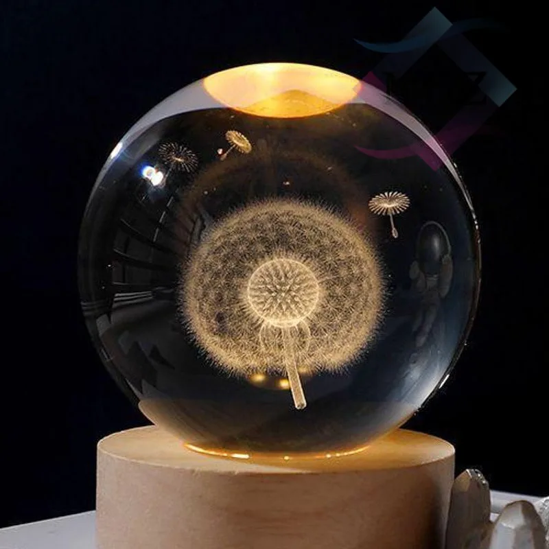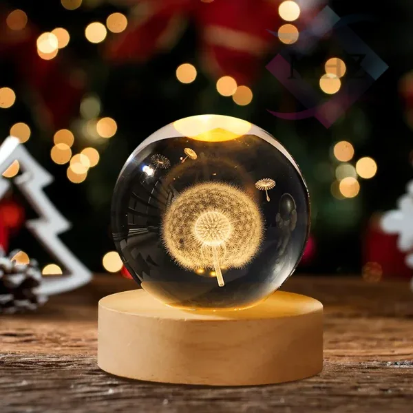 چراغ خواب مدل گوی کریستالی طرح قاصدک قطر ۸ سانتیمتر: ترکیبی از نور، آرامش و شعر